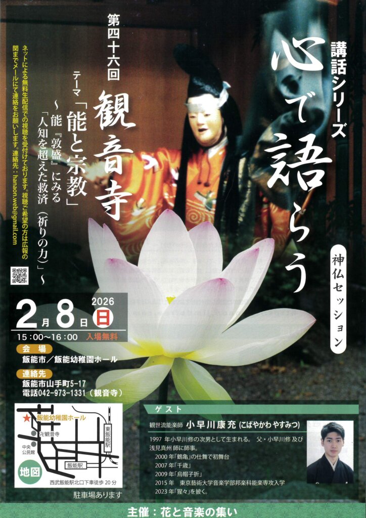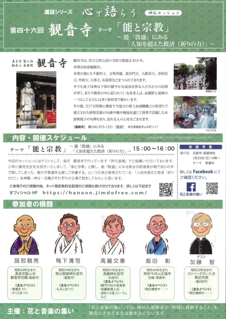 ■2月8日■心で語らう 第46回 観音寺。テーマ「能と宗教」~能『敦盛』にみる「人知を超えた救済(祈りの力)」~
