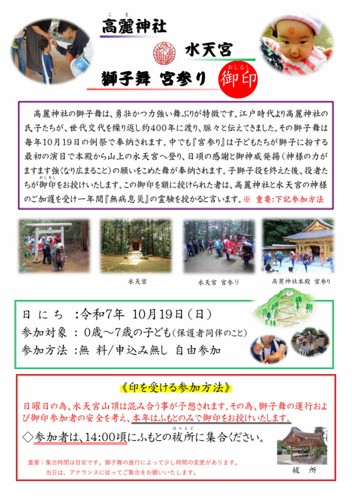 ■10月19日 獅子舞御印行事 (子どもの額に印を授けます)