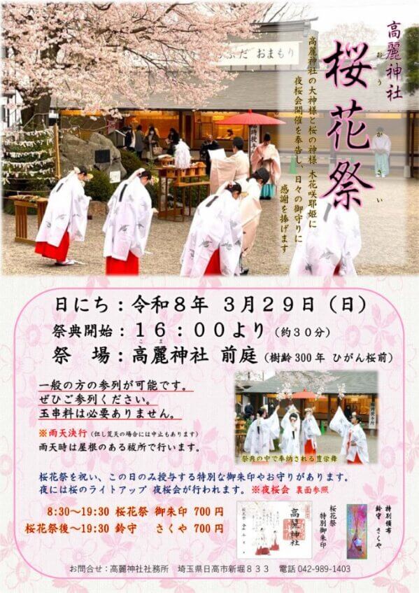 3月29日■ 桜の下で舞の奉納「桜花祭」夜桜のライトアップ「夜桜会」